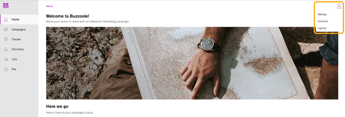 Cliccando in alto a destra sull’immagine profilo è possibile accedere al menu delle impostazioni e - nel caso siano disponibili per la tua sottoscrizione - degli Account.